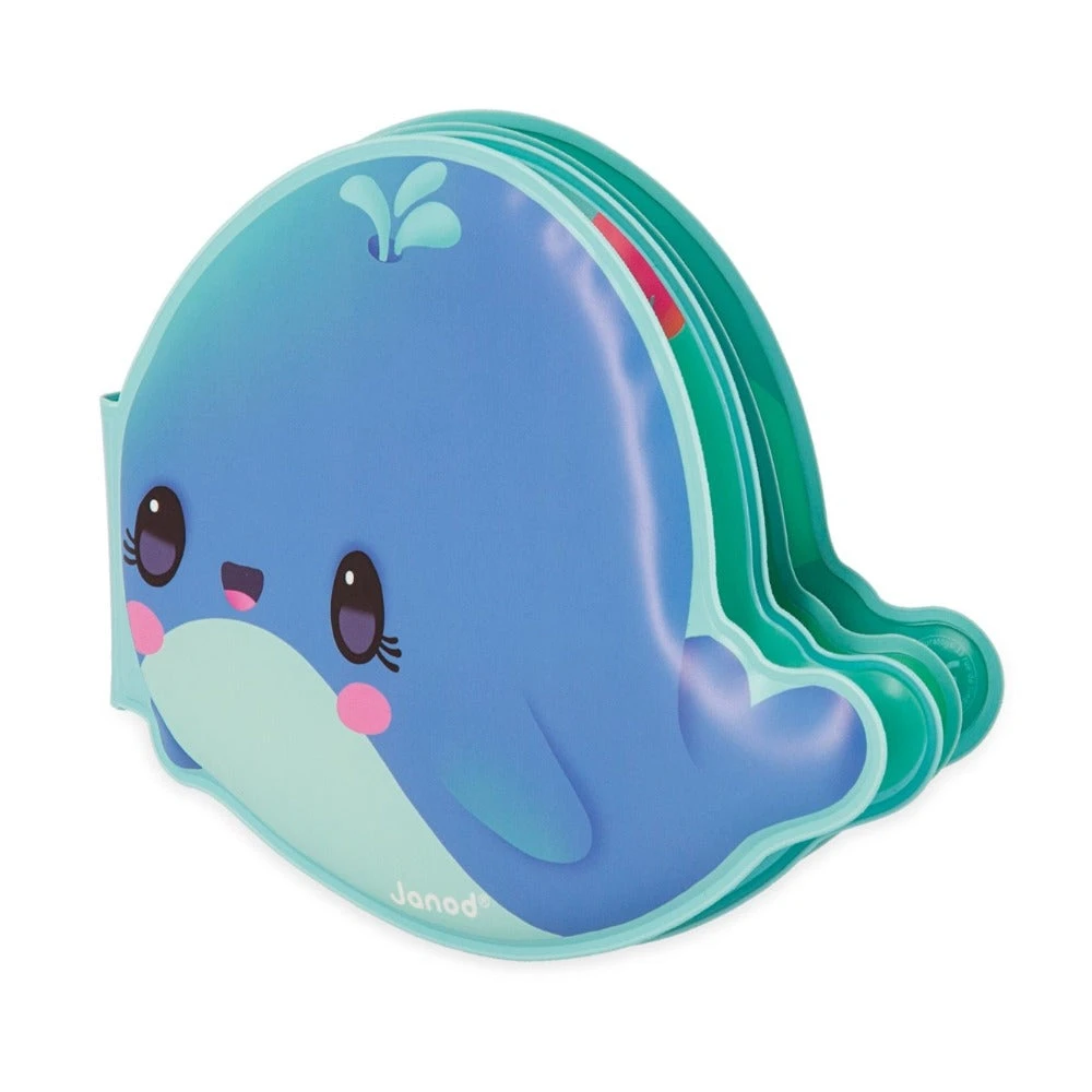 JANOD badboekje over een walvis, badspeelgoed voor kinderen vanaf 10 maanden. Ga op avontuur met baby walvis en zorg dat je zijn mama vindt.