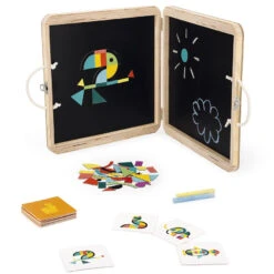 Houten puzzel van JANOD met 9 puzzelstukken. Elk puzzelstuk heeft een andere vorm en is een uitdaging voor kinderen vanaf 1 jaar. Leg de 6 geometrische vormen op de juiste plek en zet de vogel bovenop.