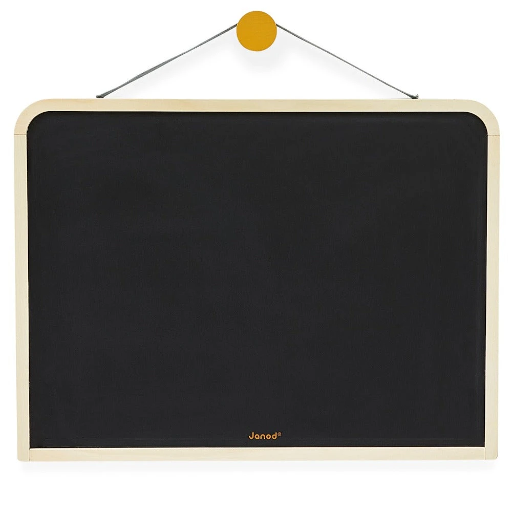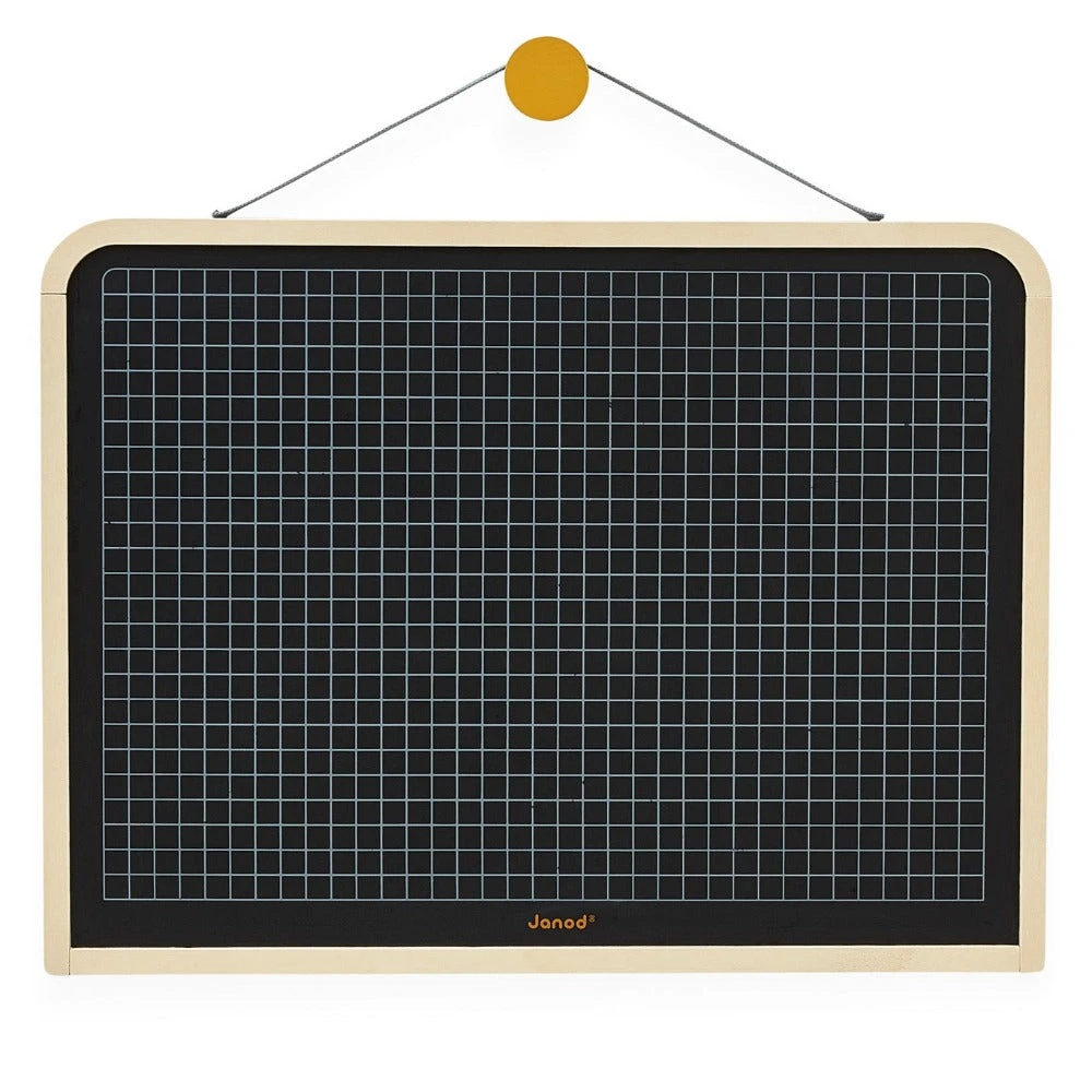 JANOD dubbelzijdig schoolbord om op te hangen. Het schoolbord van 60 x 45 cm heeft 1 schoolbord zijde en een zijde met ruitjes. Gebruik de ruitjes om sommen op maken of om via de lijntjes een mooie tekening te maken.