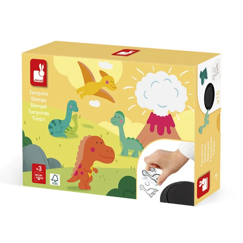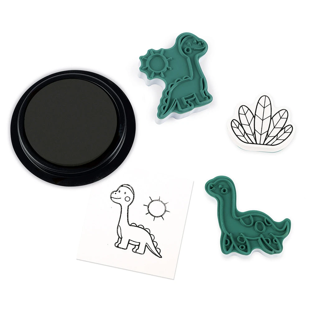 JANOD stempelset Dino uit de Stampinoo collectie, 15 verschillende peuter stempels + stempelkussen in dinosaurus thema Een leuke stempelset voor kinderen vanaf 3 jaar.
